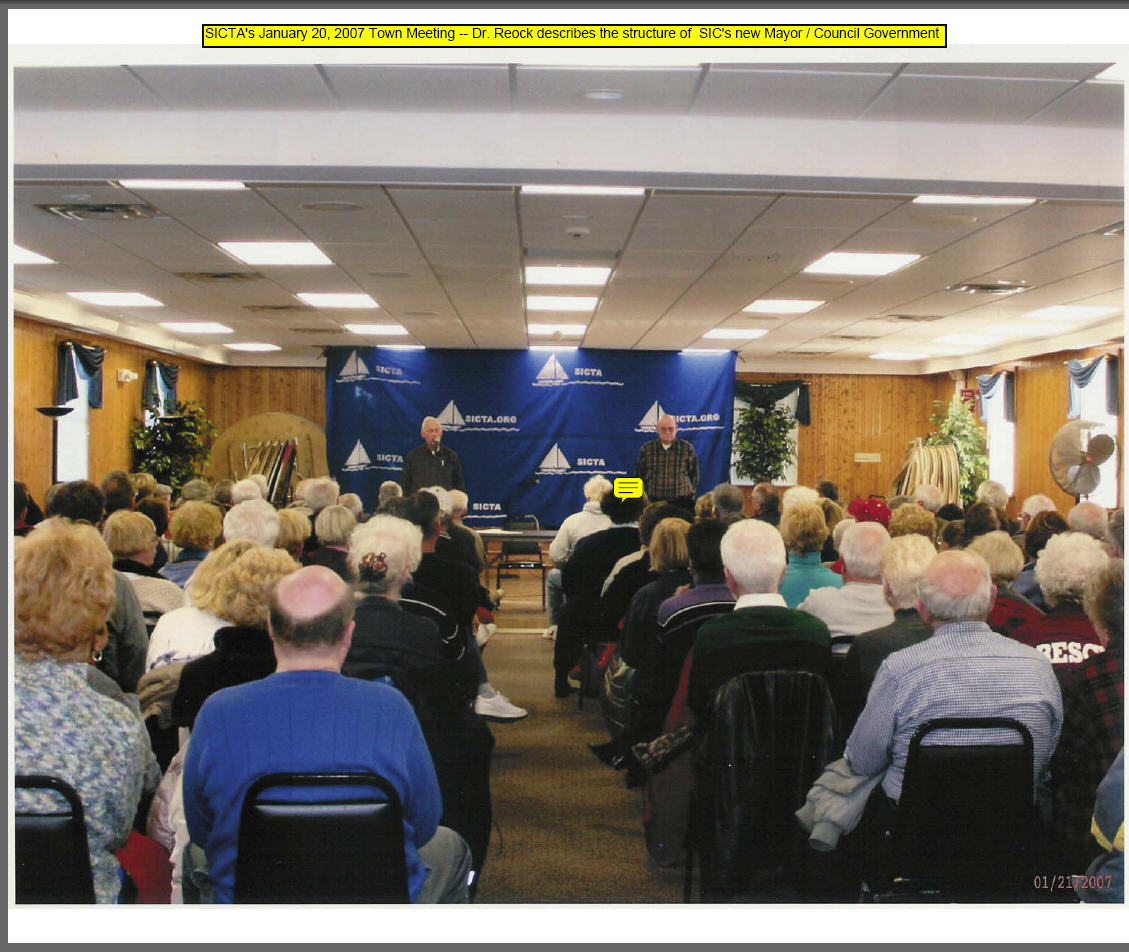 SIC Facilities discussions! See the City's 12/10/12 E-Newsletter and 12/8/12 Powerpoint presentation (in .PDF format) for background. A public workshop meeting was held on December 15, and the topic will also be discussed at the Council meeting on December 27. Tax implications! City's summary of the outside alcohol ordinance workshop! Council held a workshop on September 25 to discuss making the outside alcohol rules implemented in February permanent, as well as parking issues. Their summary. George Marinari, Jr., passed on July 25. George's family, SIC, and SICTA's Board of Directors suffered a great loss. RIP, George. Obituary. [Webmaster's note: my fondest memories of George include the times he made me laugh during a boring/contentious/boring-and-contentious meeting. The only time he wasn't smiling is when he was slipping in a dry "one-liner" bit of humor.] Charting our Course! A popular feature, but it was too time-consuming to maintain. Archived Charting our Course page.The North End Association is not active right now, but here's a link to their latest Web page.